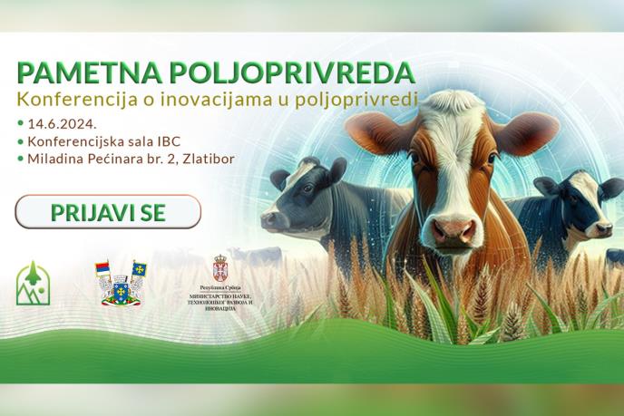 Konferencija pod nazivom “Pametna poljoprivreda” biće održana 14. juna 2024. godine sa početkom u 09:30 časova u konferencijskoj sali Inovacionog biznis centra Zlatibor na Zlatiboru i otvorena je za sve zainteresovane. Konferenciju organizuje Inovacioni biznis centar Zlatibor pod pokroviteljstvom Ministarstva nauke, inovacija i tehnološkog razvoja Republike Srbije i opštine Čajetina, a u saradnji sa Naučno-tehnološkim parkom iz Čačka.