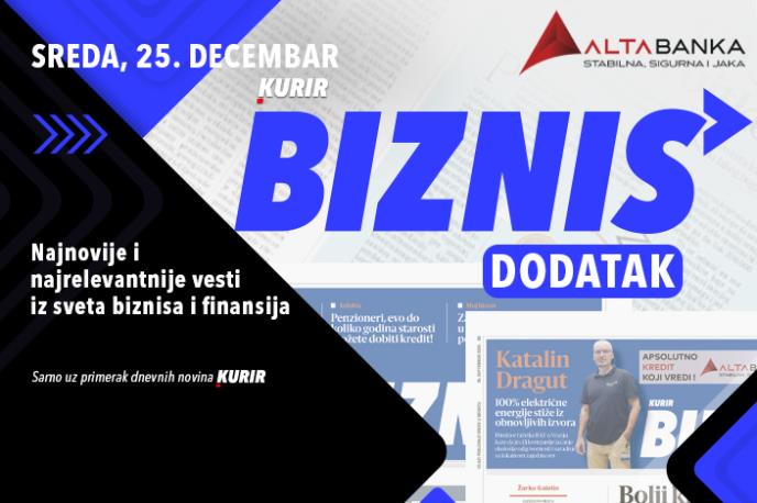 Sutra vas u Kuriru očekuje specijalni dodatak posvećen biznisu – vaša sveobuhvatna destinacija za najvažnije vesti iz sveta ekonomije, preduzetništva, finansija, tehnologije, nekretnina i berze. U ovom izdanju donosimo aktuelne informacije i analize koje vam mogu pomoći da bolje razumete kretanja na tržištu i unapredite svoje poslovanje. Naši stručni saradnici pripremili su ekskluzivne intervjue sa uspešnim preduzetnicima i direktorima, koji dele svoja iskustva i strategije za postizanje uspeha.