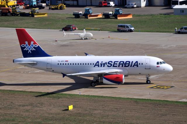 Prvi avion „Er Srbije“ - „erbas A319“ sleteo je 19. okotbra na Beogradski aerodrom „Nikola Tesla“. U njegovoj pratnji bila su dva vojna aviona „mig 29“. Avion novoosnovane kompanije „Er Srbija“ doleteo je iz Diseldorfa, gde je ofarban. „Er Srbija“ počeće zvanično da posluje 26. oktobra, za kada je zakazan prvi promotivni let na relaciji Beograd - Abu Dabi.