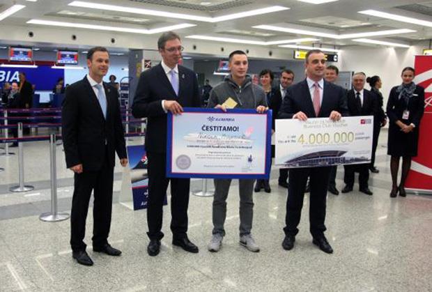 BEOGRAD - Premijer Srbije Aleksandar Vučić danas je na Aerodromu "Nikola Tesla" dočekao četirimilionitog putnika, saopštila je vladina Kancelarija za saradnju sa medijima.