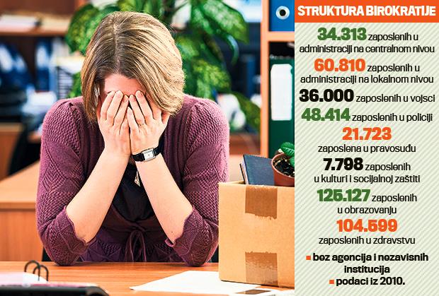 Javni sektor u ovoj situaciji podrazumeva državnu i opštinsku administraciju, zaposlene u zdravstvu, obrazovanju, vojsci, policiji, agencijama i nezavisnim institucijama. Prema poslednjim informacijama, njih ima oko 540.000, a Vlada se obavezala da godišnje otpušta oko pet odsto, što za 2015. znači da broj mora da se smanji za 27.000.