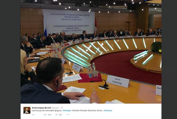 Vučić je istupajući na zajedničkom zasedanju Poslovnih saveta Srbije i Rusije kazao je da je cilj povećanje obostranih investicija. Naveo je da je Srbija ove godine na novoj listi Svetske banke poboljšala rezultat i sa prošlogodišnjeg 59 mesta došla na 32. mesto. Po njegovim rečima, ruski investitori mogu da računaju na poslovni i sigurni ambijent u Srbiji. Rekao je da se ove godine očekuje privredni rast do jedan odsto. Vučić je kazao da je Srbija veoma stabilna, ali da postoji bojazan od nestabilnosti u regionu.