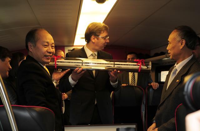 Ministarka Mihajlović, predsednik Nacionalne komisije za razvoj i reforme NR Kine Vang Siaotao, ambasadori Kine i Mađarske u Beogradu, Li Mančang i Atila Pinter, predstavnici srpskih železnica, Saobraćajnog instututa CIP i kineskog konzorcijuma krenuli su Štadlerovim vozom iz Beograda ka Novom Sadu.