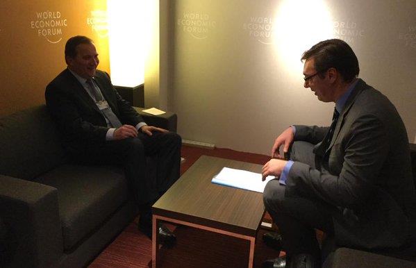 Vučić se u Davosu sreo sa ministrom spoljnih poslova Austrije Sebastijanom Kurcom s kojim je razgovarao o izbegličkoj krizi i putu Srbije ka Evropskoj uniji.