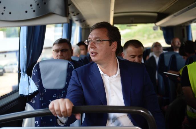 (VIDEO) VUČIĆ AUTOBUSOM NA KORIDOR 11: Obišao radove i razgovarao s radnicima kod Ljiga