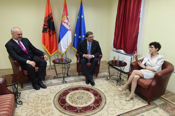 Ona je dodala da je počastvovana što je u društvu srpskog i albanskog premijera koji su kako je naglasila pokazali mudrost, viziju i postali vođe u ostvarivanju regionalne saradnje, jer su svesni da je to put za brži privredni rast".Ona je govoreći na skupu na kome učestvuje više od 300 predstavnika albanskih i srpskih kompanija kazala da je cilj projekta pojednostavljenja trgovine da podstakne veću ekonomsku saradnju među zemljama zapadnog Balkana, kao i između EU, a fokus je na smanjenju troškova i vremena u trgovini i transportu kroz bolju koordinaciju i veće sposobnosti institucija.