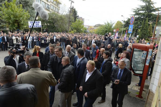 Premijer Srbije Aleksandar Vučić prošetao je danas centrom Vranja, a brojnim građanima koji su ga sačekali obećao da će država pomoći domaćim firmama koje trenutno imaju problema, među kojima je i kompanija "Jumko".