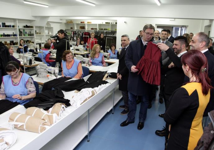 FOTO VUČIĆ OBIŠAO ČAČANSKU FABRIKU KONFEKCIJE Država ulaže POLA MILIONA EVRA za 100 novih zaposlenih