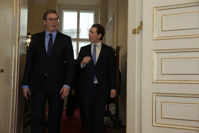Na zajedničkoj konferenciji za novinare sa austrijskim kancelarom Sebastijanom Kurcom, Vučić mu je zahvalio "na svemu što je učinio ne samo za Srbiju već za ceo Zapadni Balkan" i pozvao ga da "onoliko koliko može u svom spoljnopolitičkom domenu" pomogne Srbiji na putu ka EU.