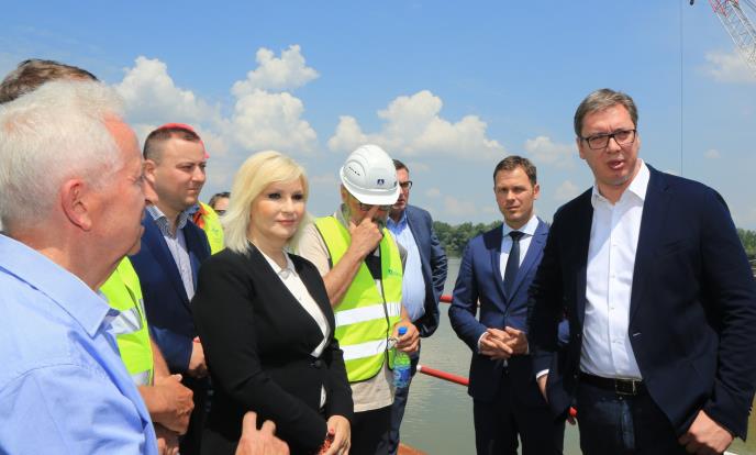 Ona je danas, zajedno sa predsednikom Srbije Aleksandrom Vučićem i premijerkom Anom Brnabić, obišla radove na izgradnji mosta preko Save i Kolubare, na deonici auto-puta Surčin-Obrenovac, na drumskom Koridoru 11.