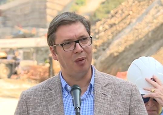 Vučić je rekao da bi put trebalo da bude gotov do kraja godine i da mesec dana tamo-vamo nije toliko važno koliko je važno da bude bezbedan ne samo za buduće putnike nego pre svega i za one koji sada rade na njemu poput minera.