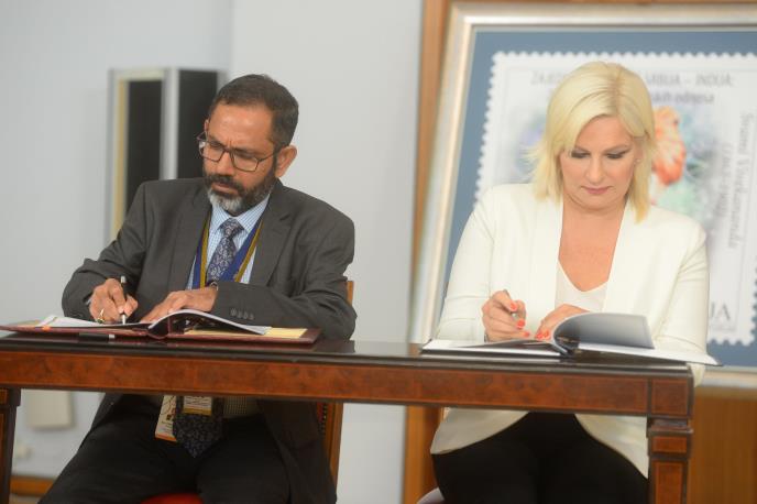 Sporazum je potpisan u prisustvu predsednika Srbije Aleksandra Vučića i potpredsednika Indije Venkaja Naidua, dodaje se u saopštenju.