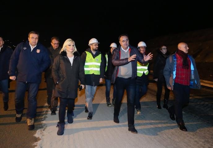 GRDELICA - Potpredsednica Vlade Srbije i ministarka građevinarstva, saobraćaja i infrastrukture Zorana Mihajlović obišla je sinoć noćne radove na Koridoru 10 na trasi auto-puta kroz Grdeličku klisuru.