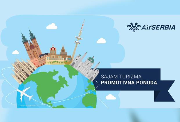 Er Srbija predstaviće devet novih destinacija na Međunarodnom sajmu turizma u Beogradu. Posetiocima koji su zainteresovani za kupovinu karata za sedam novih redovnih linija – za Kijev, Madrid, Barselonu, Rijeku, Krasnodar, Helsinki i Kairo, i dve sezonske za Nicu i Zadar, ali i za ostale destinacije, nacionalni avio-prevoznik ponudiće bolje uslove kupovine, kao i druga brojna iznenađenja.