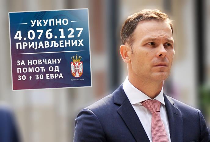 Prijave za novčanu pomoć u iznosu od 60 evra, završene su sinoć u ponoć, a do tog trenutka prijavilo se ukupno 4.076.127 građana, saopštio je ministar finansija Siniša Mali.
