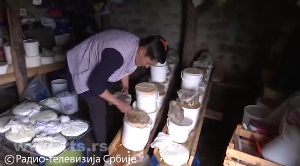"Pomuzemo krave, donesemo grudnjače i istresemo, malo ga skupimo, kad se iscedi mi isečemo, usolimo i slažemo u kante", objasnila je Vidosava Vučković iz sela Gonje na Pešterskoj visoravni.