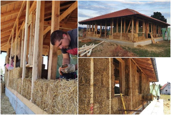 - Savetujem onima koji bi da brzo sagrade ovakvu kuću da ne ulaze u tu avanturu. Najbolje je napraviti nacrte u zimu i sačekati dozvolu, a u proleće postaviti temelj kuće i krov. Trebalo bi do juna sve to da završite jer početkom jula dolazi nova slama. Ako tražite staru slamu u proleće biće dvaput skuplja. Na ovoj kući je ovogodišnja slama balirana na adekvatan način - određene čvrstoće i težine. U avgustu se rade zidovi i nanosi blato. Prvi tanak sloj se osuši za tri dana, drugi se nanosi za izravnanje, treći za zadebljanje. Pre završnog sloja dođu električari, ugrade kablove, paralelno se rade i vodo-instalacije. Zatim plafon, u a septembru prozori i vrata. Ne trebaju vam radijatori jer je kuća od slame energetski efikasna. Leti vam ne treba klima pošto u zidovima ima mnogo blata. Noću se ohladi i drži svežinu - objašnjava Horvat.