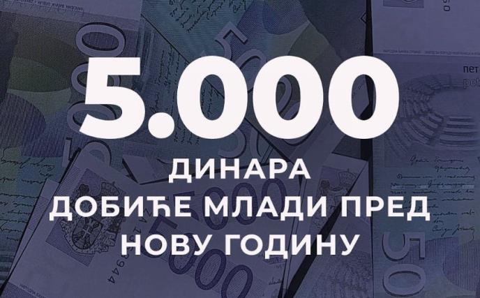 BEOGRAD - Mladi od navršenih 16 do navršenih 29 godina dobiće po 5.000 dinara novčane podrške od države, pred Novu godinu, baš kao što je predsednik Republike Srbije Aleksandar Vučić i najavio.