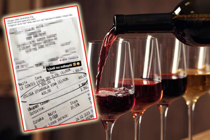 BEOGRAD - Usluga, kaže, otvaranja vina. Mislim da sam sada sve video. I odgovor na to nije "neka, sam ću", već "sad sam ti došao i nikad više", napisao je na Tviteru jedan Nebojša kom je na mrežama izleteo fiskalni račun iz restorana u Beogradu s neobičnom stavkom.