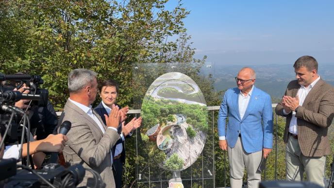 Brnabić je na planini Kablar gde počinje izgradnja betonsko-staklenog vidikovca umesto drvenog do kojeg vodi uobičajena planinarska staza, rekla novinarima da se "u Ovčarsko - Kablarsku klisuru nije ulagalo 60 i kusur godina".
