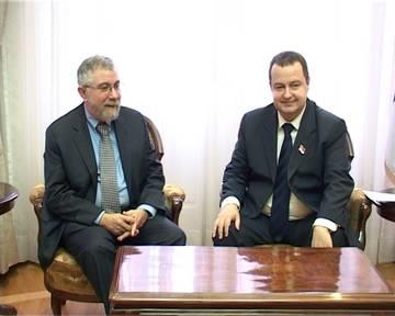 Dačić je rekao da je pitanje kako u uslovima krize preduzeti kratkoročne i dugoročne mere "i izlečiti tešku bolest" i dodao da nijedan politički i drugi cilj ne može biti ostvaren bez stabilnog ekonomskog sistema. "Mi nemamo vremena da čekamo savete, već moramo da preduzmemo korake koji će ne samo sačuvati pacijenta u životu već omogućiti da bolesna ekonomija bude izlečena", kazao je premijer i dodao da je koncept za koji se zalaže Krugman podsticajan i inspiratvan i da je njegova ideja sada jedina održiva u Srbiji. Dačić je ukazao da je veoma bitno da Nacionalni savet za ekonomski oporavak Srbije ne bude samo "alibi" Vladi Srbije, već predlagač mera, i da je važno da se svi ujedine da bi se kriza prevazišla i privreda pokrenula. Ekonomista Pol Krugman je u Srbiji na poziv Kluba Privrednik i Nacionalnog saveta za ekonomski oporavak.