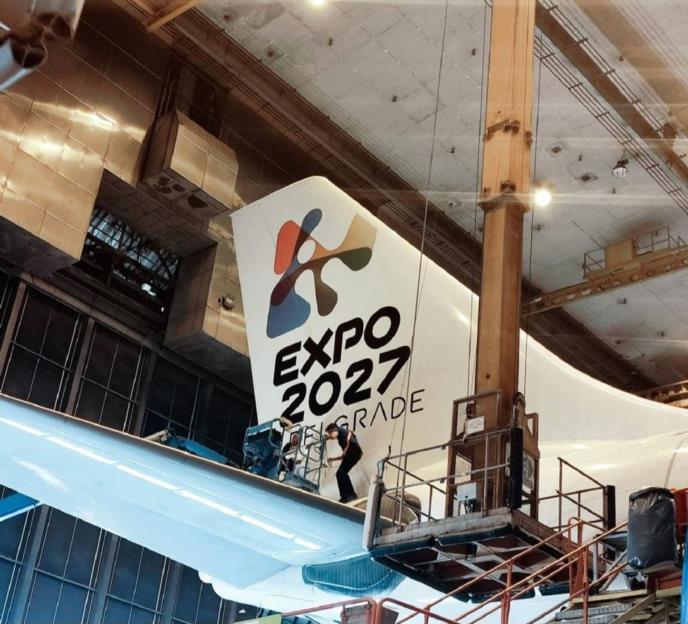 Novi Airbus 330 - 200 koji će biti u floti Air Serbia (Er Srbija) trenutno se brendira EXPO oznakama odnosno boji se simbolima predstojeće izložbe EXPO 2027, objavio je na ministar Siniša Mali na svojim nalozima na društvenim mrežama.
