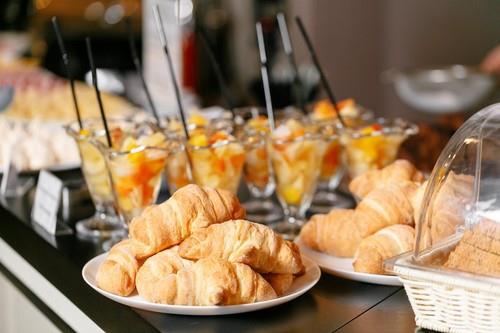 Gosti uzimaju hranu sa švedskog stola u hotelu