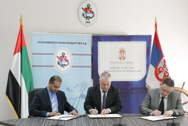 BEOGRAD - Srbija i kompanija Al Dahra iz Ujedinjenih Arapskih Emirata potpisali su danas memorandum o dokapitalziaciji Jugoslovenskog rečnog brodarstva (JRB) i sporazum o prodaji zemljišta i izgradnji Luke Pančevo.