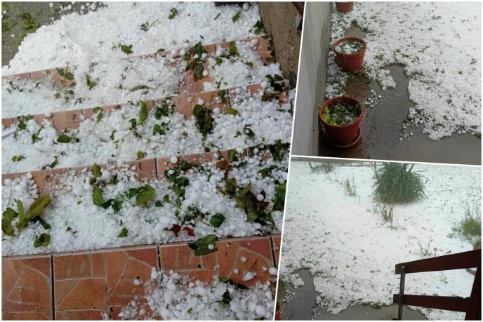 - Jak grad padao je u utorak popodne, šteta je već bila ogromna, a sada je dokusurio ovo što je ostalo. Vidite i sami to je sve belo kao da je pao sneg, ovo gde je prošlo tu više ništa nije ostalo - kaže za meštanin sela Kloka kraj Topole koje je danas pretrpelo i najveću štetu.