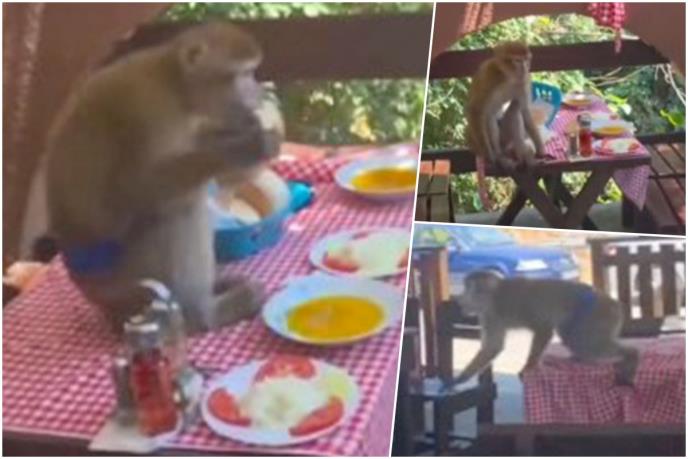 Na njemu se nalazi ni manje ni više nego majmun koji je odlučio da proba ručak, koji su turisti naručili u jednom restoranu.
