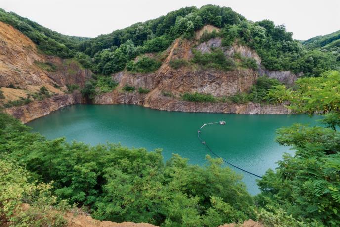 Ledinačko jezero nastalo je u napuštenom kamenolomu, a njegova specifična boja vode rezultat je kombinacije mineralnog sastava tla i sunčevih zraka.