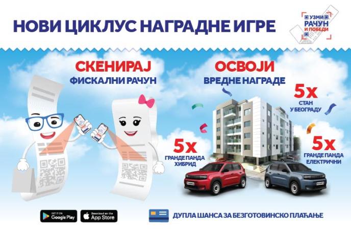 „Drago mi je što su se i ovog puta građani u velikom broju odazvali da učestvuju u nagradnoj igri i da skupljaju fiskalne račune, tako da ih trenutno u aplikaciji ima čak 376.000. Ovog puta smo obogatili nagradni fond sa 10 automobila, i to sa pet hibridnih i pet električnih Fijat Grande Panda modela. Podsećam građane da smo do sada u sedam ciklusa podelili ukupno 85 stanova u Beogradu“, rekao je prvi potpredsednik Vlade Siniša Mali.