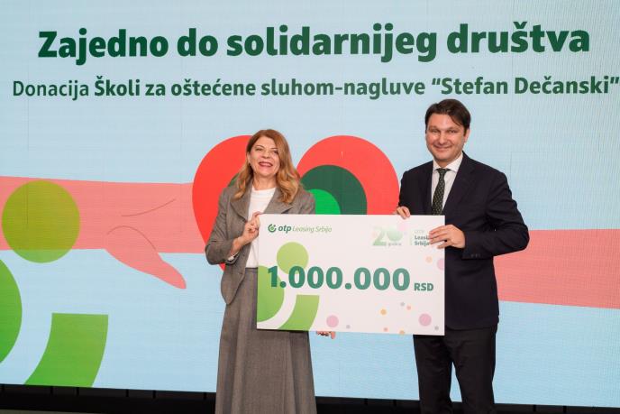 Povodom jubileja, OTP Leasing je odlučio da donira novčana sredstva Školi za oštećene sluhom i nagluve „Stefan Dečanski“ u Beogradu, sa tradicijom dugom 128 godina i da, na taj način, pruži svoj doprinos u unapređenju uslova obrazovanja i svakodnevnog života učenika ove škole.