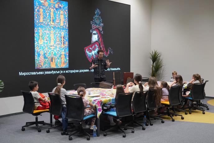 Kroz igru, crtanje, kaligrafiju i razgovor, deca su istraživala kako su pre više od osam vekova nastajale knjige i kako je izgledao svet starih manastirskih dijaka – monaha koji su pažljivo ispisivali i ukrašavali svaku stranicu. Gledajući repliku „Miroslavljevog jevanđelja“ sa zlatnim slovima i ornamentima, najmlađi su otkrivali kako su pisane prve stranice srpske književnosti i koliko je svaka reč nekada bila dragocena.