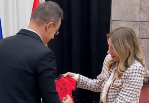 "Moja dvomesečna ćerka dobila je od šefa mađarske diplomatije dve knjige za decu o Budimpešti, kao i benkicu i bodi fudbalskog kluba Honved čiji je predsednik, i to sa njenim imenom na leđima. Budući da razmatra saradnju sa Crvenom zvezdom kako bi se dobro pripremio, poklonila sam mu loptu sa potpisima igrača. Verujem da će je u retko slobodno vreme koristiti i za igru sa sinovima".