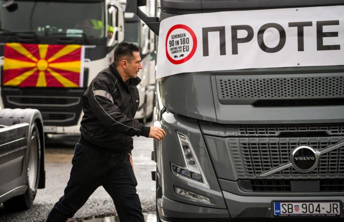 Prevoznici protestuju zbog novog sistema za ulazak i izlazak iz Evropske unije, koji prema njihovim navodima ograničava boravak vozača na području Šengena kao i zbog neodgovarajuće reakcije evropskih institucija.