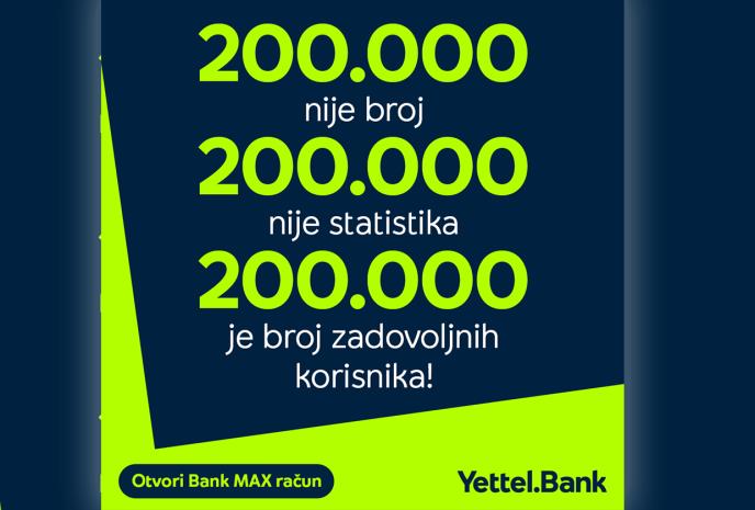 Dostizanje 200.000 korisnika nije samo kvantitativni uspeh, već jasan signal da korisnici prepoznaju vrednosti koje Yettel Bank dosledno gradi. Pored porasta broja Bank MAX korisnika, napredak se ogleda i u ponašanju korisnika, Yettel Bank je prepoznata kao broj 1 ekspert u digitalnom bankarstvu, kao i lider u donošenju inovacija. Takođe, nalazi se na 3. mestu kada je u pitanju razmatranje izbora prilikom odabira banke. Kada govorimo o zadovoljstvu korisnika, NPS (Net Promoter Score) je u trećem kvartalu iznosio 44,6 čime se izdvaja i kao najviši na tržištu.