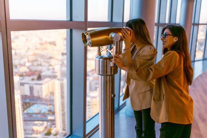 Na visini od 155 metara otvara se pogled od 360 stepeni na Beograd, od Beogradske tvrđave i Hrama Svetog Save, do Avalskog tornja, Novog Beograda i starogradskih ulica. Doživljaj dodatno obogaćuju kaleidoskopi sa multimedijalnim pričama o srpskoj prestonici, teleskopi koji omogućavaju da se znamenitosti sagledaju iz nove perspektive, kao i atraktivne tačke za najlepše selfije sa panoramom