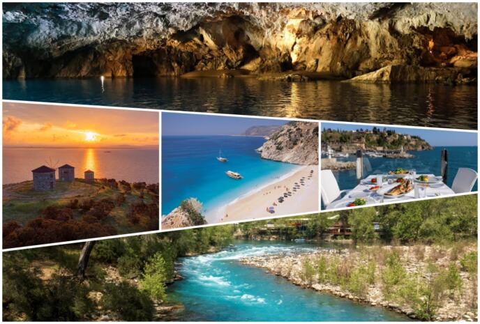 znamenitostima, uključujući antičke gradove poput Patare i Side, kao i znamenitosti kao što su Hadrijanova kapija, vodopadi Duden i impresivne pećine Karain i Damlataš.
