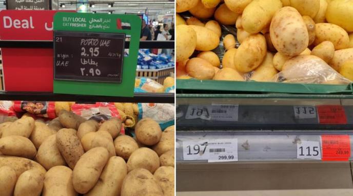 - Krompir, domaći. Leva slika UAE 87 dinara. Desna slika Srbija, jeftiniji 249,99. Navikoh da nas, Nemačka i Austrija postide cenama, ali ovo mi nekako previše. I boli - napisao je on.
