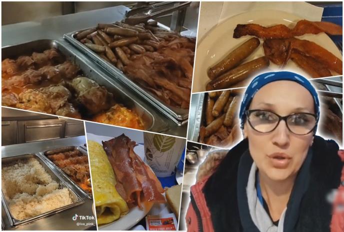"Vodim vas da vidite kako izgleda jedan prosečan obrok ukoliko budete došli da radite sezonski na Aljasku. Odmah da vam kažem da je to jedini možda monotoni obrog gde nema toliko velike raznovrsnosti u hrani. Ručak i večera su obično raznovrsni i svake nedelje dobijamo jelovnik šta će tog dana biti za večeru i ručak, dok se do doručak podrazumeva. To je par namirnica koje i inače doručkujemo u kući.