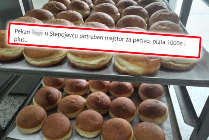 "Pekari u Stepojevcu potreban majstor za pecivo.Plata 1.000€ i plus... Telefon za ponude je istaknut", ovako glasi trenutno najprimamljiviji oglas za posao u Srbiji, koji je porodična pekara iz mesta Stepojevac kod Lazarevca istakla na ulaznim vratima lokala, kao i na svojoj Fejsbuk stranici.
