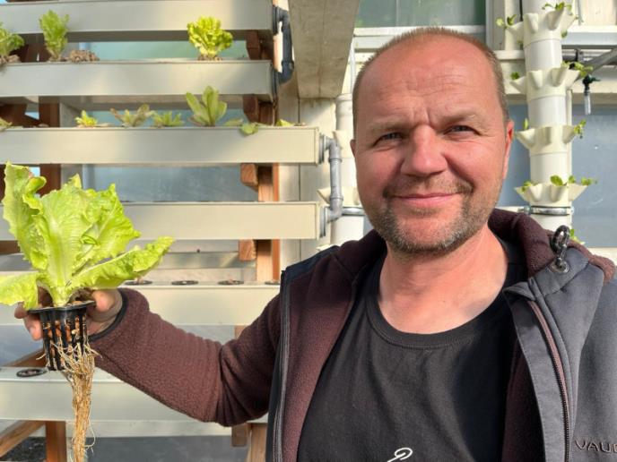Na njegovom imanju se u plasteniku se primenom akvaponije uzgaja zelena salata, dok ispod poda samog plasetnika u svežoj vodi plivaju šarani i po koja albino kečiga.