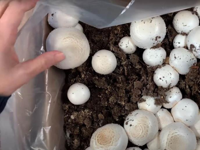 U jednom hangaru stane, u proseku, oko 400 džakova na svih pet nivoa, a u kojima se nalazi kompost od pilećeg stajnjaka i odgovarajuće vrste zemlje. Svaki taj džak da oko pet kilograma šampinjona u tri ture i to u roku od mesec-dva, pa kad završi taj krug, novi džak dolazi na njegovo mesto i tako cele godine...