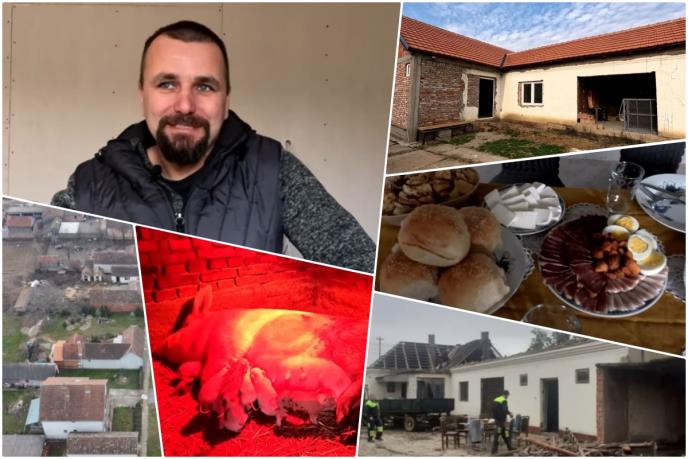 I pre useljenja, Aleksandar je kupio i krmaču koja je već oprasila njih 14! Kuća koju su kupili je stara i upravo je renoviraju, a odrađeno je 30 posto posla, najgorih i najgrubljih radova - sad slede instalacije. Iako tu ne žive svakog dana, već drže životinje, a Aleksandar kaže da je besmisleno da dođu na selo a da ne drže svoje životinje.
