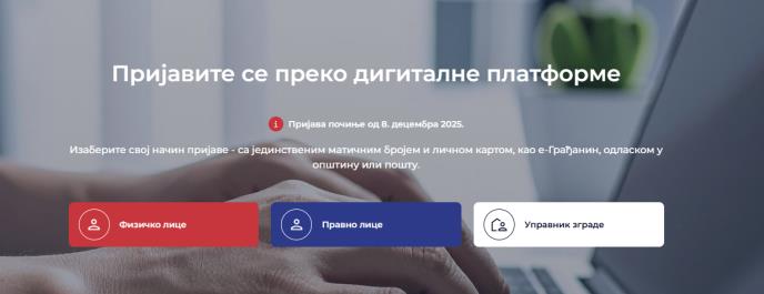 Građani objekte prijavljuju na tri načina - preko onlajn platforme, u svim opštinama i u više od 580 objekata "Pošta Srbije".