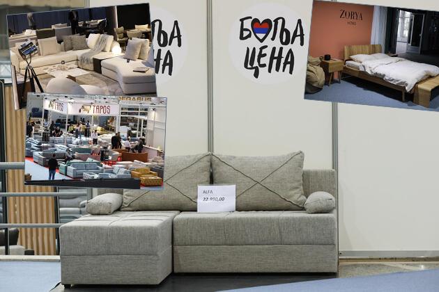 Akcija "Bolja cena" oborila je čak i cene nameštaja! Ugaona garnitura sa ovom oznakom jeftinija je za čak 7.000 dinara na 59. Međunarodnom sajmu nameštaja, opreme i unutrašnje dekoracije (UFI), koji traje do 11. oktobra pod kupolama Beogradskog sajma.