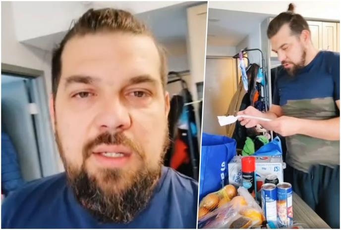 "Nisam znao da volite horor filmove, ali pre nego što napravim taj video prvo da vam pokažem koliko košta jedan odlazak u prodavnicu i šta sam kupio. Jedne peperone da pravimo picu, slaninica, ona je top, mnogo mi se sviđa, sir isto za picu, kokice, da gledamo Netflix i da grickamo, pola kile mesa, jedan krastavac, malo slatkiša, gotovo testo za picu, komada dva, kilo luka, četiri konzerve za Čedu hrana, jedno ovo 'go***ce' da miriše kuća, jedan 'kuking' sprej, dve pomorandže, karanfilić, 2 Monstera, pakovanje mauntn nju i Pepsi, pršutica i zdenkica. Ode stotka, nema ni sto da se napuni", rekao je ovaj Srbin.