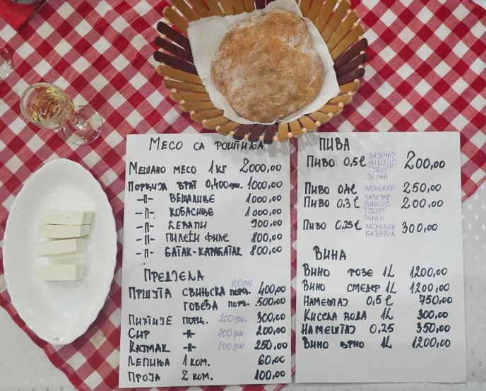 - Nismo hteli da budemo alavi, nego želimo da se ljudi lepo provedu, a i da ne potroše čitavu platu za tu jednu noć. Primera radi, kilogram mešanog mesa sa roštilja koštaće 2.000 dinara, a porcija vrata o 400 grama 1.000 dinara. Vešalice, po porciji od takođe 400 grama, konobari će nuditi po istoj ceni od 1.000 dinara. U ponudi će naravno, pored predjela, pihtija, sireva čija porcija se kreće od 200 dinara, cene pića su takođe veoma zanimljive, kažu za RINU organizatori.