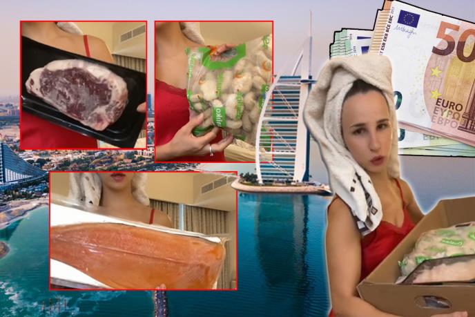 - Dva kilograma belog mesa bilo je 27 dirhama, odnosno oko 800 dinara, dva i po kilograma nekog drugog belog mesa koštalo je 57 i po dirhama, što je 1.675 dinara, a filet lososa težine kilogram i 800 grama je 126, tačnije 3.700 dinara. Kilogram pilećih kroketa je 15 dirhama, iliti 440 dinara, pola kilograma smrznutih škampa su 735 dinara, T-bone odrezak od 450 grama je 1.760 dinara, 250 grama australijskog odreska je bilo 590 dinara i mlevena piletina, koja ima pola kilograma je oko 300 dinara. U suštini, sve ovo me je izašlo oko 10.000 dinara - zaključila je Anđela u svom videu.